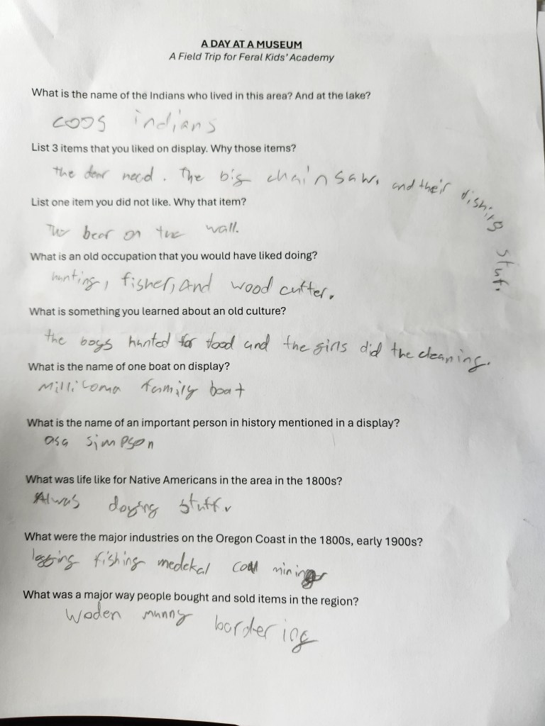 So, with all the errands finished, we then ran back the way we came, and stopped at the local museum to get some “schoolin” in for the day. Normally, they would have spend the day doing classes and reading. But, today was a day to get out and about and learn some things about the local area.